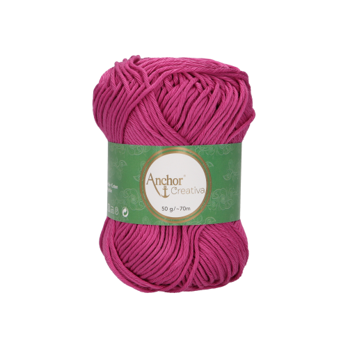 Anchor Creativa é um fio macio e sedoso feito de algodão 100% mercerizado de alta qualidade. É um fio de fibra natural, hipoalergénico. respirável e fácil de manusear, tornando-o perfeito para vestuário, acessórios e decoração de casa, em técnicas de tricot e crochet.